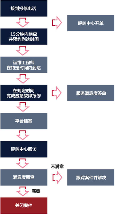 3、服務(wù)熱線24小時有人值班,15分鐘內(nèi)做出回應(yīng),維修人員節(jié)假日和周六、日不休息,根據(jù)情況的輕重緩急可隨時到達現(xiàn)場維修。